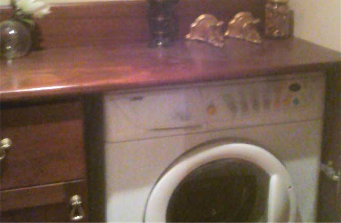 Tout le mobilier intérieur est en bois massif réalisé et agencé sur mesure avec de nombreux rangements: buffet, armoires, penderie, tiroirs, etc..